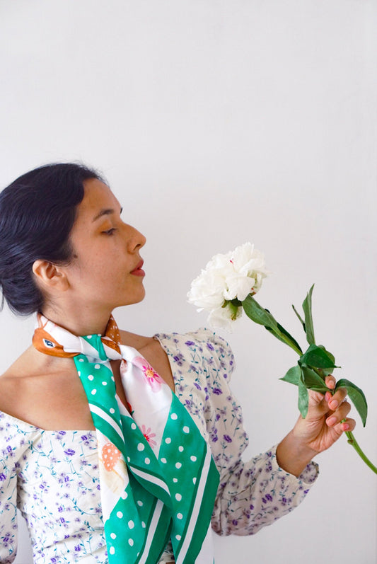 The Wild Summer Garden collection features three stunning scarves printed on 100% silk twill. Each scarf arrives in a beautiful keepsake box made from recycled paper.