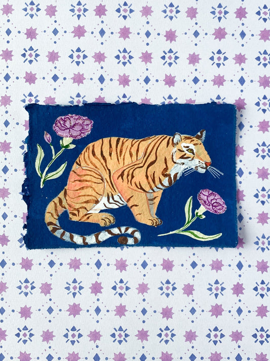 This collection of miniature paintings each symbolises strength, love, and joy. Painted with Chinese bamboo brushes on artisanal Indian paper, these detailed artworks reflect nature's beauty and resilience.